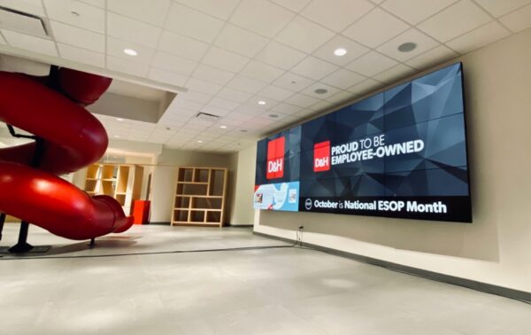 Currently, D&H’s lobby video wall is used to present custom “welcome” or “thank you” slides and videos for guests and vendors, and can also link with the company’s Twitter® feed, YouTube® channel and other online content sources to display a constant stream of branded content.